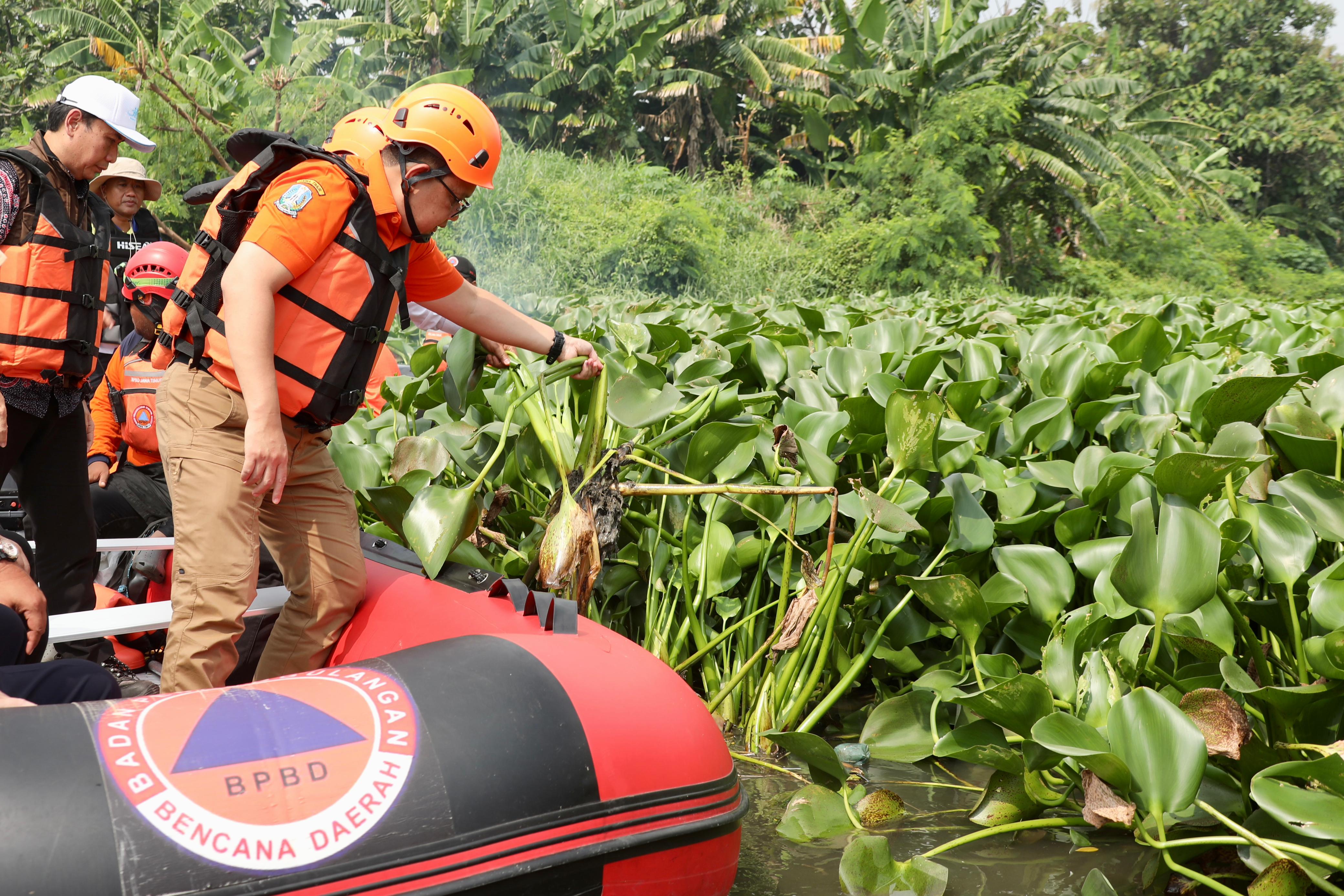 KANALSATU - Antisipasi terhadap terjadinya banjir terus dilakukan. Plh. Gubernur Jawa Timur Adhy Karyono melakukan susur sungai sekaligus pembersihan eceng gondok di wilayah Juanda dan Bungurasih Sidoarjo, Kamis (15/2/2024).