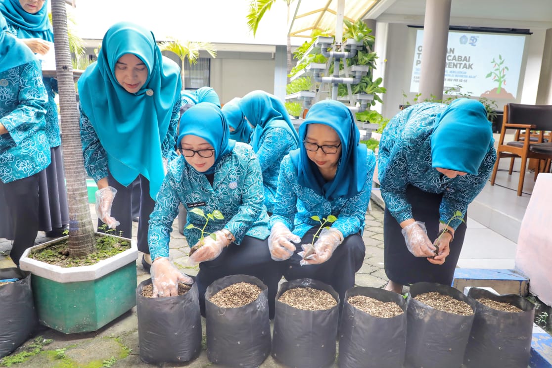 KANALSATU - Pj. Ketua TP PKK Prov. Jatim Isye Adhy Karyono mengajak seluruh kader PKK di kabupaten/kota untuk menanam Cabai di pekarangan rumah masing masing.