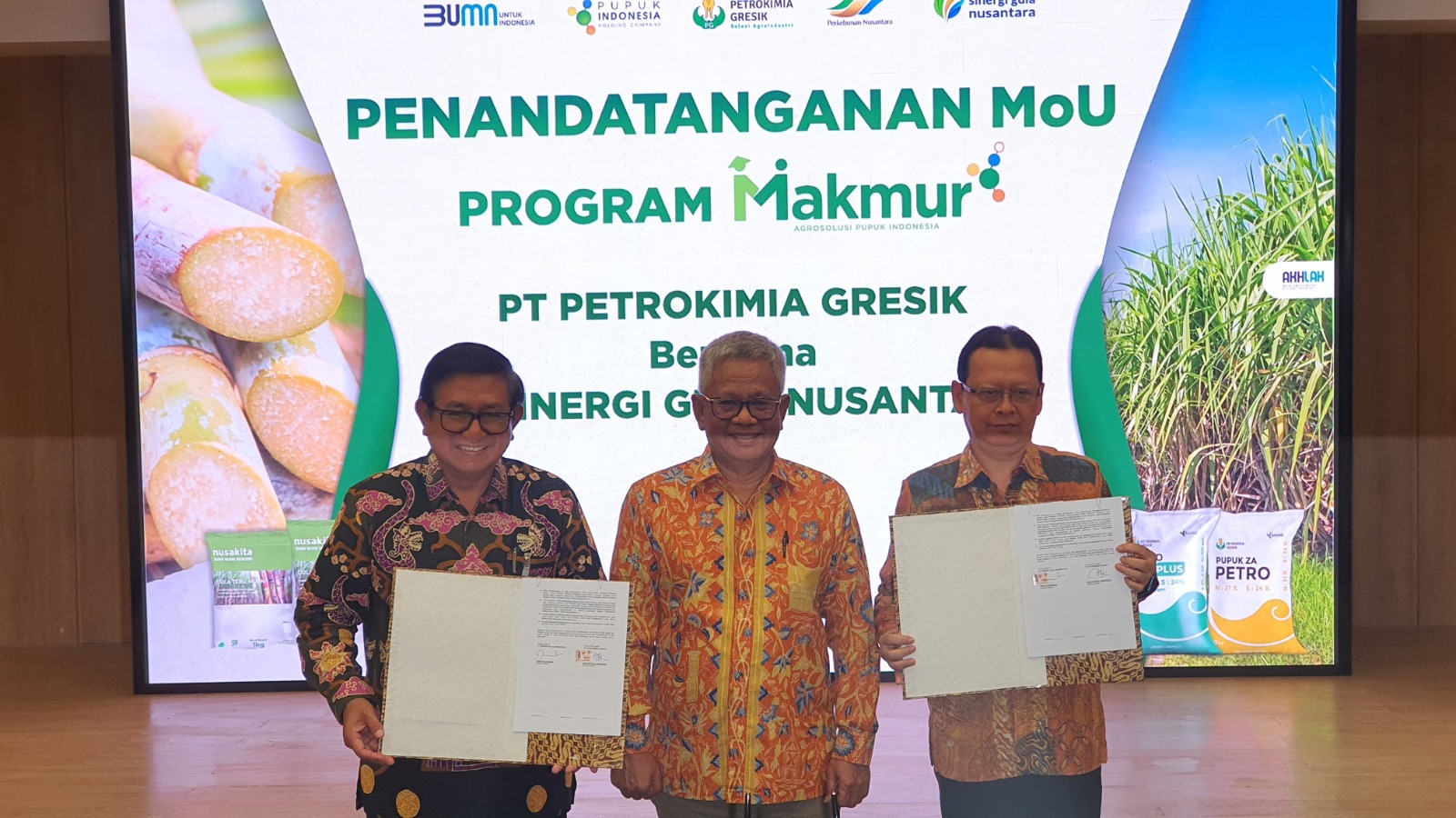 KANALSATU - Anak perusahaan PTPN (III) Persero Holding Perkebunan, PT Sinergi Gula Nusantara (SGN) melaksanakan penandatangan kesepahaman (MoU) program MAKMUR dengan PT Petrokimia Gresik, Rabu (6/3/2024) di Gresik. Ini merupakan kali kedua SGN menjalankan program MAKMUR (Mari Kita Majukan Usaha Rakyat).