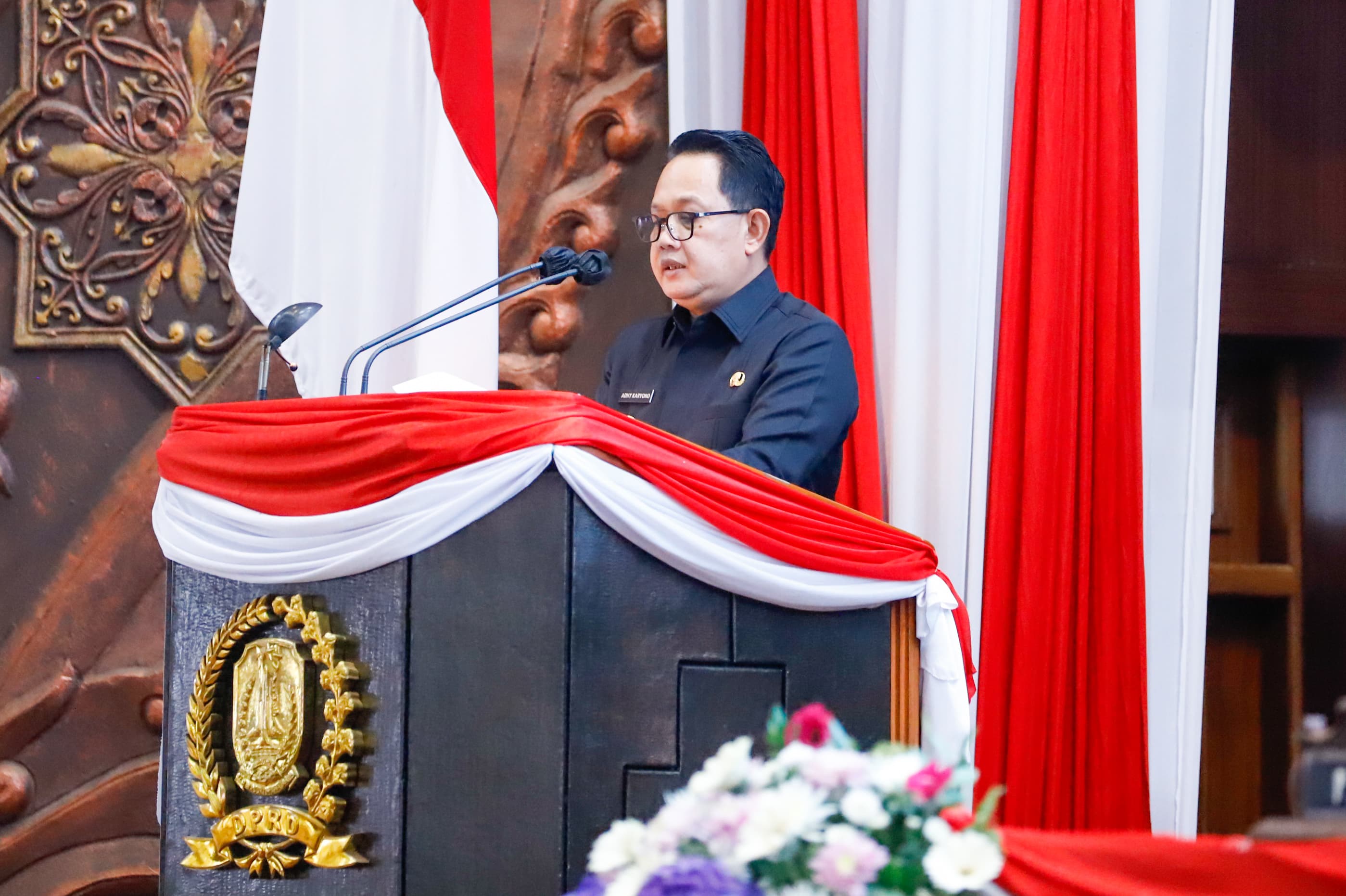 KANALSATU - Penjabat (Pj.) Gubernur Jawa Timur Adhy Karyono menghadiri Rapat Paripurna dengan agenda penyampaian Jawaban Eksekutif Atas Pemandangan Umum Fraksi-Fraksi terhadap Raperda Perubahan Atas Peraturan Daerah Provinsi Jawa Timur Nomor 6 Tahun 2019 tentang Rencana Umum Energi Daerah Provinsi Jawa Timur Tahun 2019 - 2050 di Ruang Rapat Paripurna DPRD Provinsi Jatim, Surabaya, Kamis (28/3/20242).