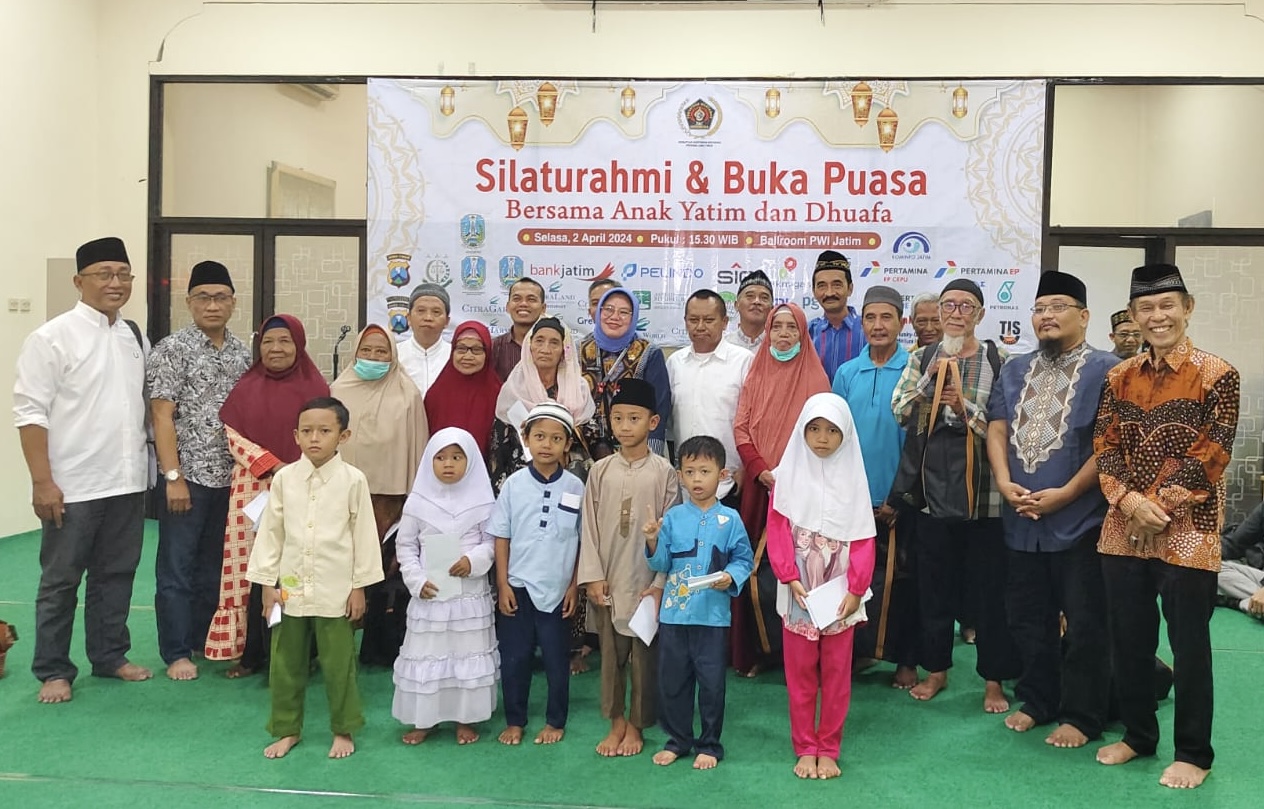 KANALSATU - Persatuan Wartawan Indonesia (PWI) Jawa Timur, menggelar buka puasa bersama dan menyantuni anak yatim, sebuah agen tetap tahunan yang wajib bagi PWI di provinsi ini.