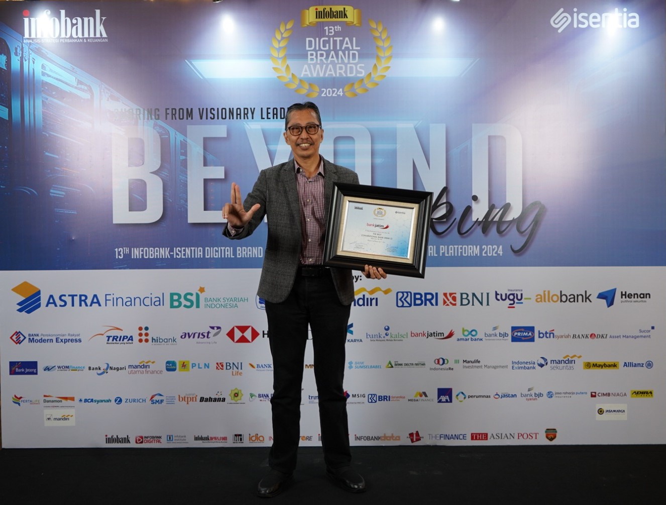 Penghargaan diterima langsung oleh Direktur Utama Bank Jatim Busrul Iman dalam acara 13th Infobank - Digital Bank Recognition 2024, Senin (1/4/2024) di Jakarta.