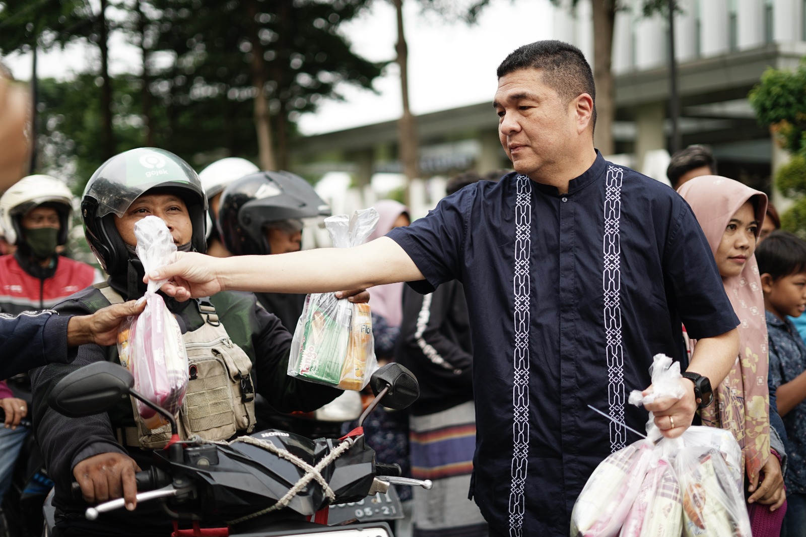 CEO National Hospital Ang Hoey Tiong bagikan takjil di sekitar National Hospital. Tahun ini National Hospital juga berikan edukasi terkait demam berdarah.