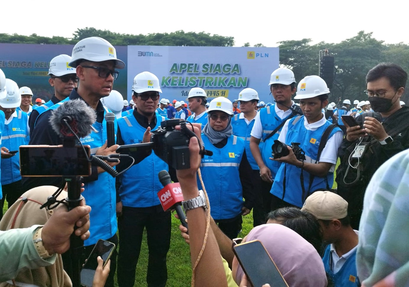 KANALSATU - Guna memastikan keandalan listrik pada libur Idulfitri 1445 H, Direktur Utama PT PLN (Persero) Darmawan Prasodjo memimpin "Apel Siaga Kelistrikan" secara nasional di PLTGU PT PLN NP UP Gresik, Sabtu (6/4/2024). Darmawan menegaskan kesiapan pasokan dan stok bahan baku primer, kesiapan transmisi dan kesiapan distribusi serta layanan pelanggan.
