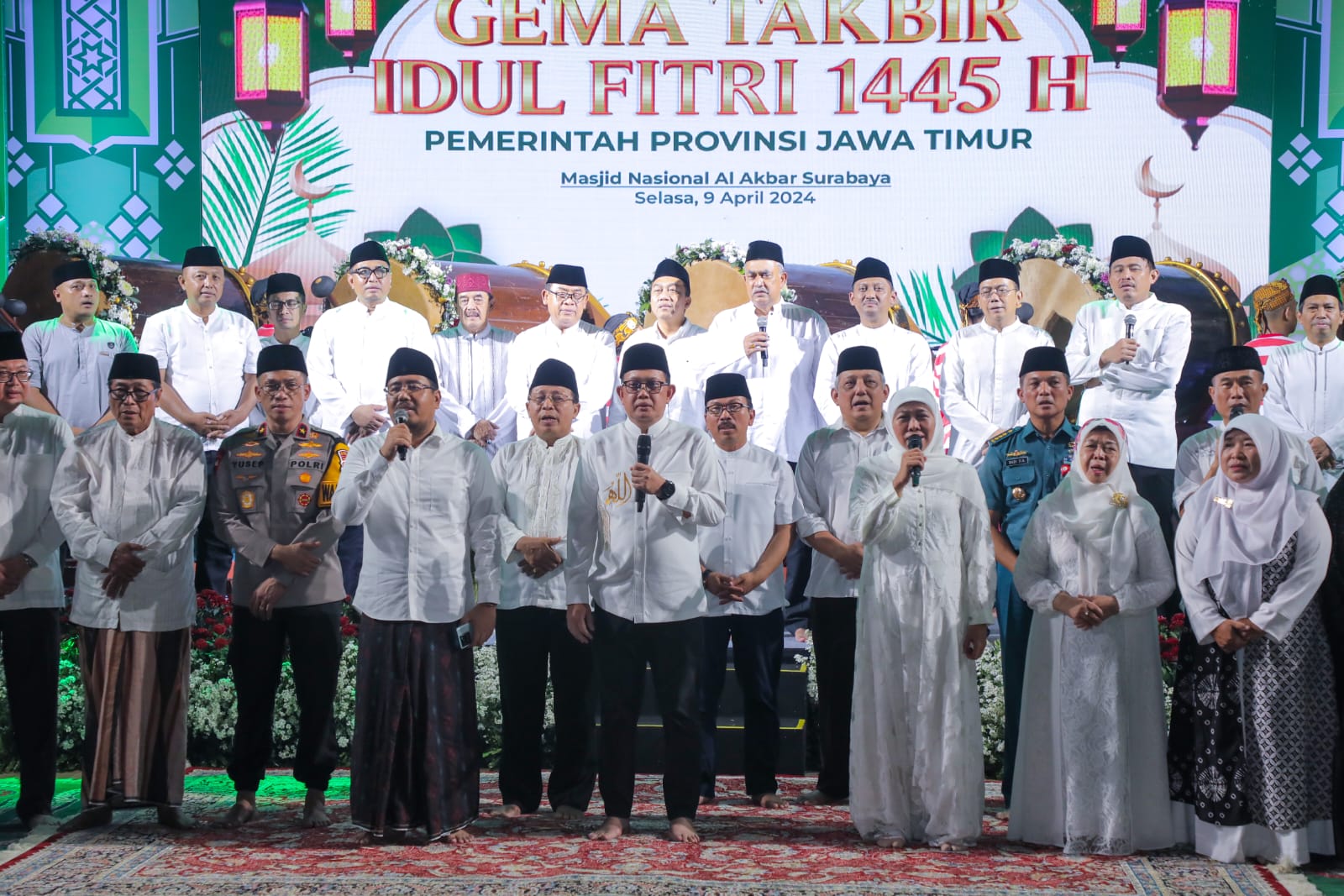 KANALSATU - Penjabat (Pj) Gubernur Jawa Timur Adhy Karyono membuka gelaran Gema Takbir Idul Fitri 1445 H di Masjid Nasional Al-Akbar Surabaya, Selasa (9/4/2024) malam.