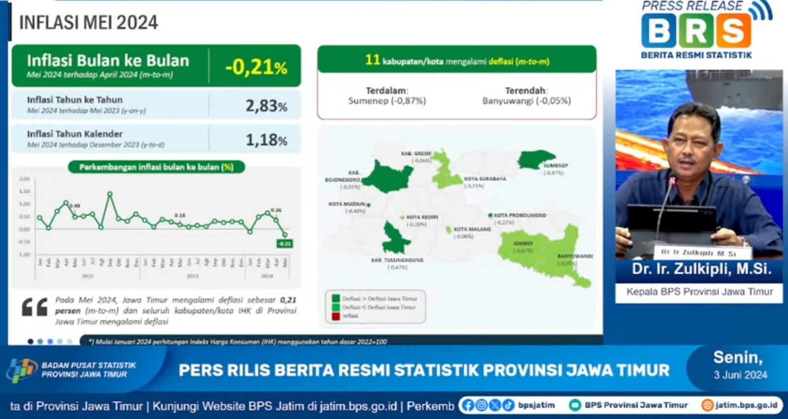 Mei 2024, Jatim Inflasi 2,83 Persen