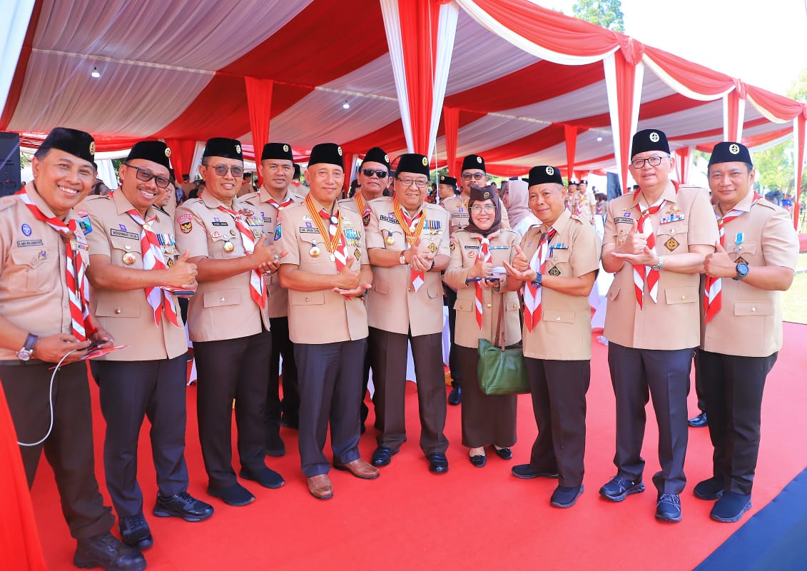 KANALSATU - Penjabat (Pj) Sekretaris Daerah Provinsi Jawa Timur Booby Soemiarsono menghadiri Upacara Puncak Peringatan Hari Pramuka Tingkat Nasional ke 63 Tahun 2024 di Bumi Perkemahan Cibubur, Jakarta, Rabu (14/8/2024).