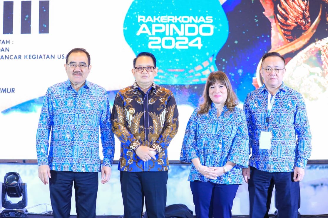 KANALSATU - Penjabat (Pj.) Gubernur Jawa Timur Adhy Karyono menghadiri Rapat Kerja dan Konsultasi Nasional (Rakerkonas) Asosiasi Pengusaha Indonesia (APINDO) ke-33 yang digelar di Hotel Novotel Samator Surabaya, Kamis (29/8/2024).