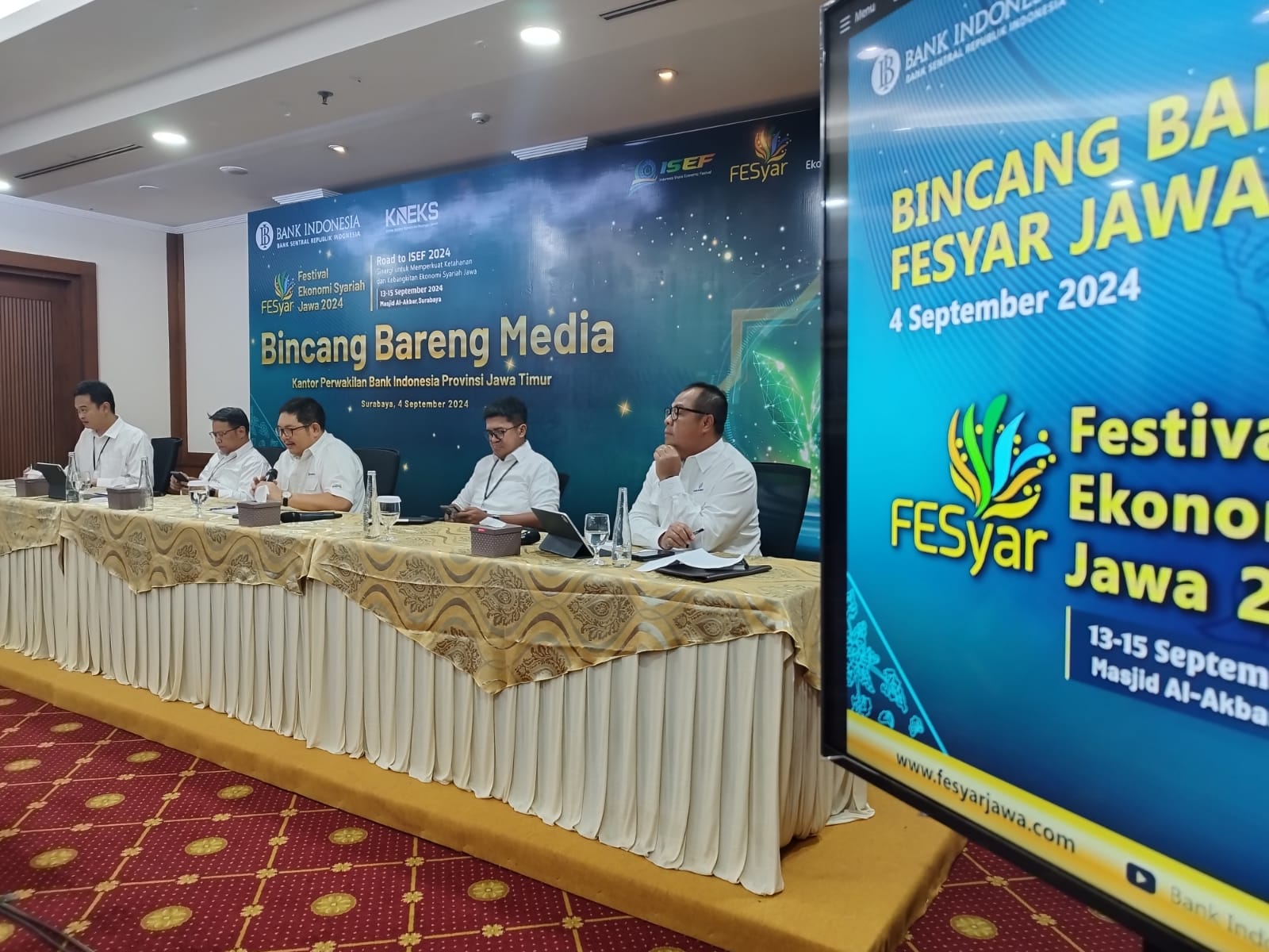 Kepala Bank Indonesia Kantor Perwakilan Jatim Erwin Gunawan Hutapea mengungkapkan, ada yang berbeda dari FESyar Jawa 2024 dibandingkan tahun-tahun sebelumnya. "Jika sebelumnya acara diadakan di pusat perbelanjaan, tahun ini kami memilih Masjid Agung Al Akbar Surabaya sebagai lokasi acara," ujar Erwin dalam kegiatan Bincang-Bincang Media (BBM) Jatim, Rabu (4/9/2024).