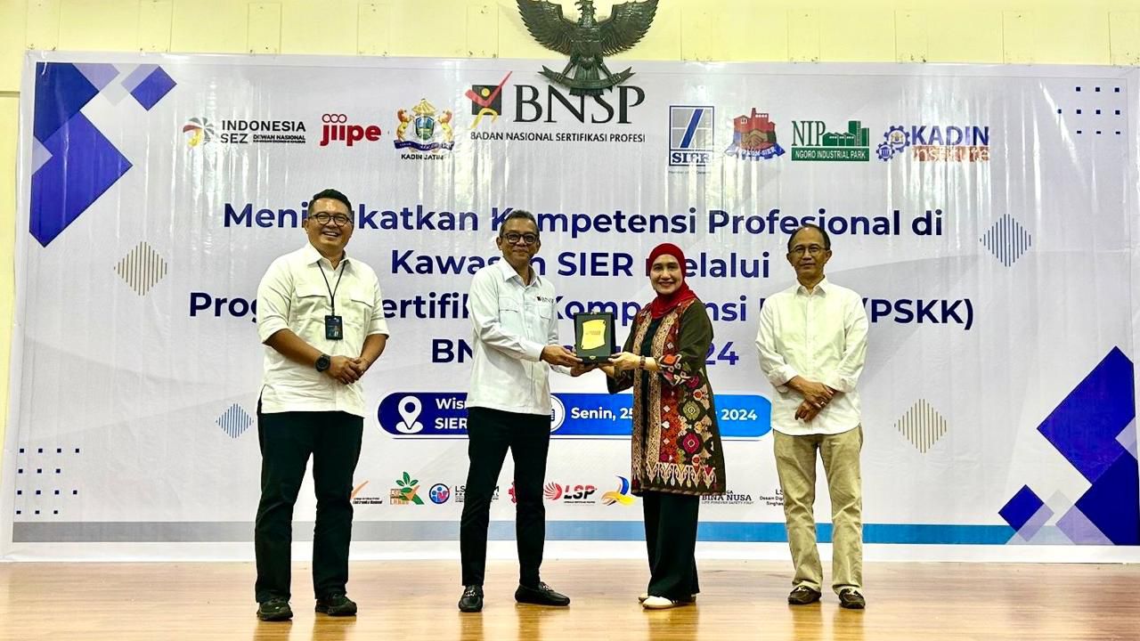 KANALSATU - Kamar Dagang dan Industri (Kadin) Jawa Timur bekerjasama dengan Badan Nasional Sertifikasi Profesi (BNSP) dan PT SIER melakukan sertifikasi profesi untuk tenaga kerja yang ada di lingkungan Kawasan Industri PT SIER. Sertifikasi kompetensi diikuti oleh sekitar 31 sektor industri, dengan jumlah peserta 150 orang.