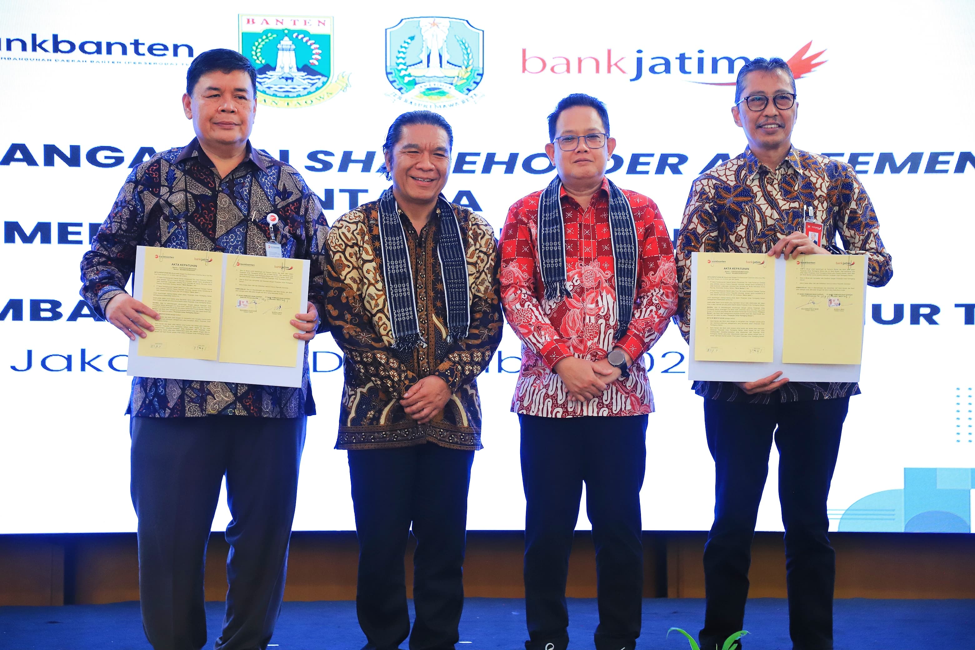 Prosesi penandatanganan perjanjian Shareholder Agreement dilakukan oleh Pj Gubernur Banten AI Muktabar dengan Direktur Utama (Dirut) Bank Jatim Busrul Iman. Kemudian dilanjutkan dengan penandatanganan perjanjian oleh Dirut Bank Banten Muhammad Busthami dengan Dirut Bank Jatim.