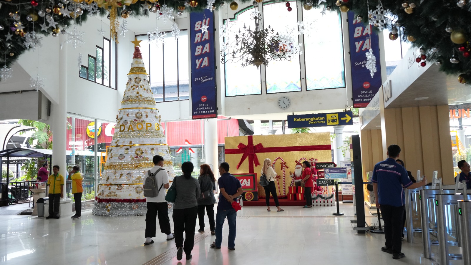 KANALSATU - Menyambut perayaan Natal 2024 dan Tahun Baru 2025, KAI Daop 8 Surabaya menghadirkan ornamen Natal di 3 stasiun keberangkatan, yakni Surabaya Gubeng, Surabaya Pasarturi, dan Malang. Ornamen tersebut di antaranya pohon Cemara, photobooth, hingga hiasan lampu warna-warni.