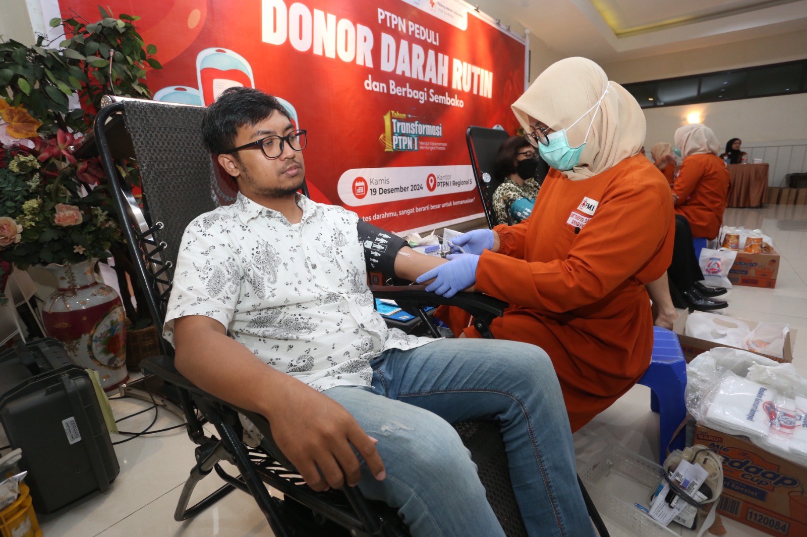 Transformasi 1 Tahun, PTPN I Regional 5 Gelar Donor Darah Rutin dan Bagi Sembako