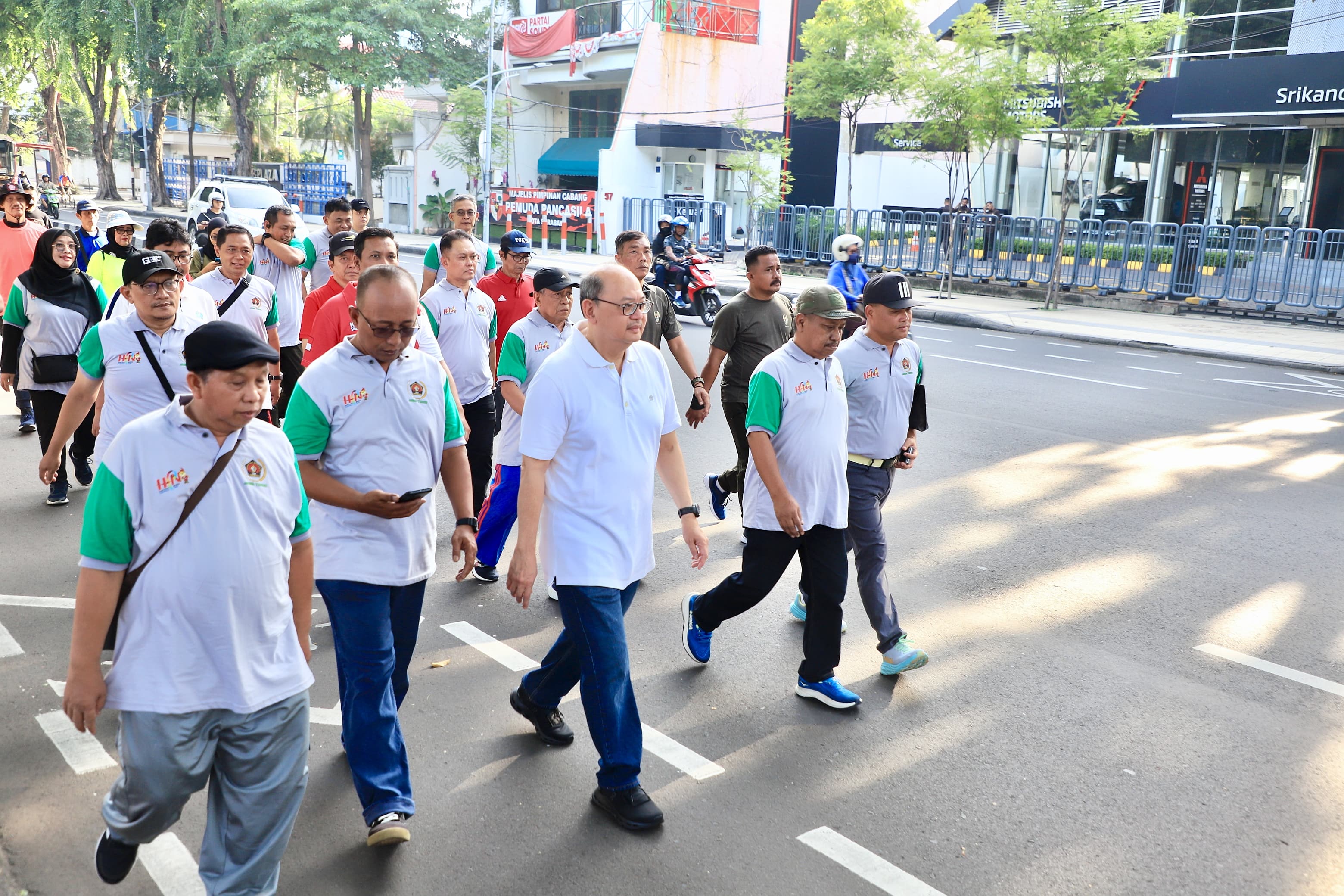 KANALSATU - Pelaksana Harian (Plh.) Sekretaris Daerah Provinsi Jawa Timur Bobby Soemiarsono membuka kegiatan 'Jalan Sehat Bersama Wartawan' dalam rangka Hari Pers Nasional (HPN) 2025 dan Hari Ulang Tahun Persatuan Wartawan Indonesia (HUT PWI) ke 79, di Taman Apsari Surabaya, Minggu (16/2/2025).