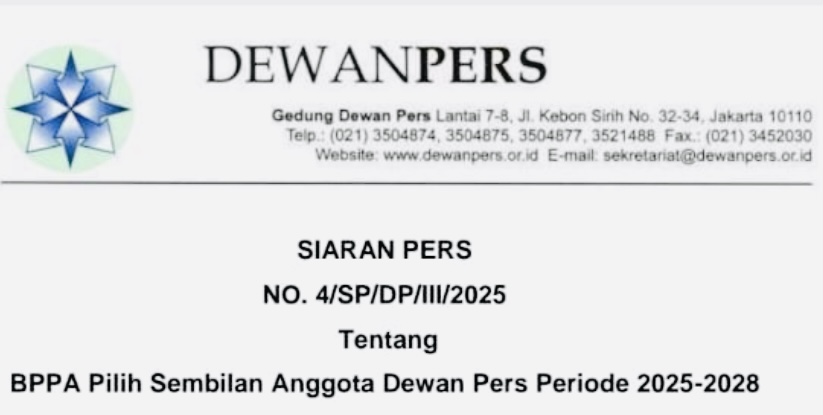KANALSATU - Badan Pekerja Pemilihan Anggota (BPPA) Dewan Pers (DP) akhirnya menetapkan/memilih sembilan anggota DP periode 2025-2028.