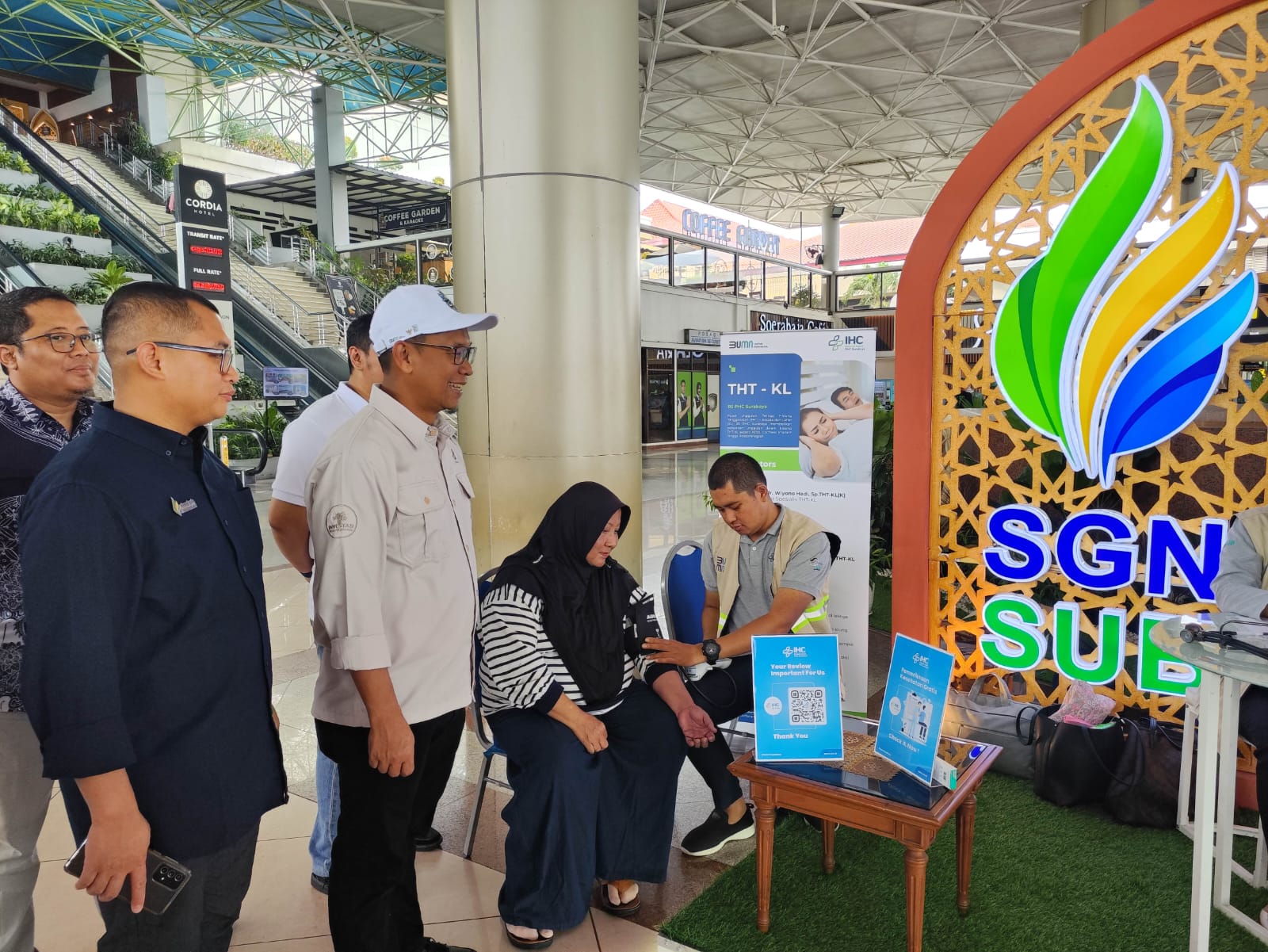 Direktur Utama (Dirut) PT SGN, Mahmudi melakukan kunjungan langsung ke posko yang berada di Terminal 1 Bandara Juanda, Kamis (27/3/2025). Terlihat di posko yang berada di lobi tengah terminal ini, hadir dengan dua area layanan.