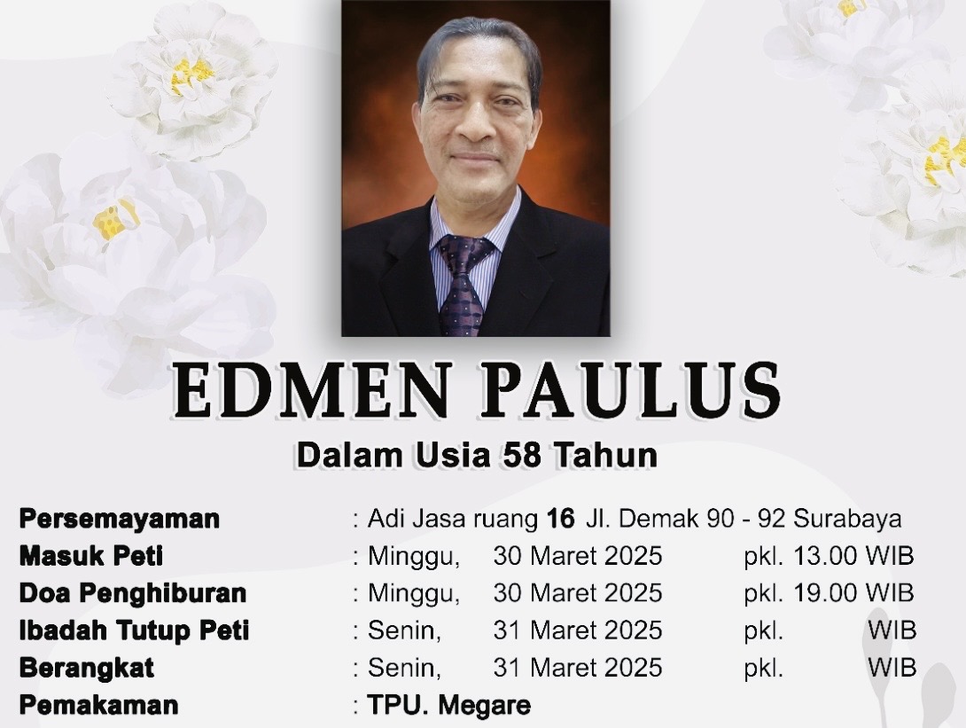 Edmen, begitu panggilan akrabnya, yang tinggal di Perumahan Babatan Pratama GG XXIX Blok ii No.14 Surabaya ini, posisi Jenazah saat ini masih disemayamkan di ADIYASA Surabaya, dan rencana Senin (31/3/1024) baru dimakamkan.