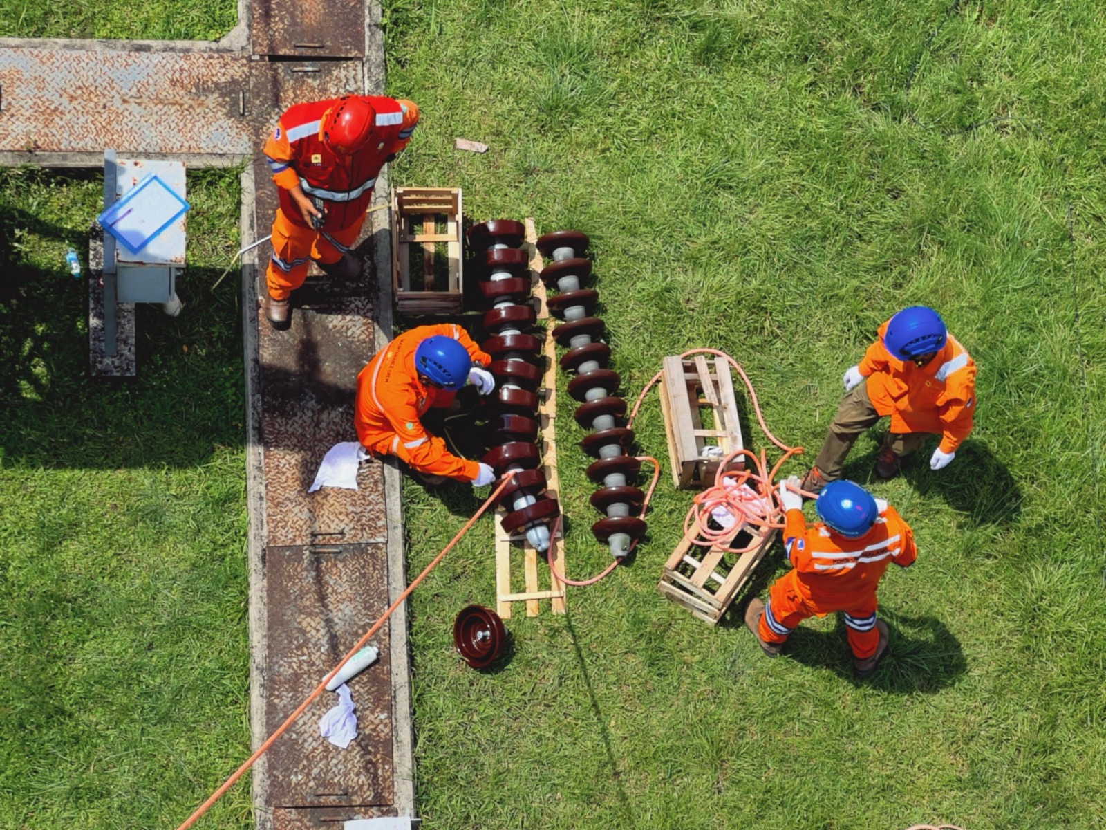KANALSATU - Tim Pekerjaan Dalam Keadaan Bertegangan (PDKB) Unit Induk Transmisi Jawa Bagian Timur dan Bali (UIT JBM) berhasil melaksanakan penggantian isolator di Gardu Induk (GI) 150kV Kebonagung dan mengamankan benda asing di Gardu Induk (GI) 150kV Rungkut.