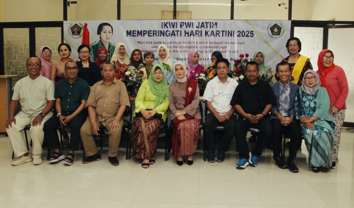 KANALSATU - Ikatan Keluarga Wartawan Indonesia (IKWI) Jawa Timur menggelar acara Peringatan Hari Kartini 2025 di Gedung Sekretariat PWI Jatim, Jl Taman Apsari 15-17 Surabaya, Jumat 25 April 2025.