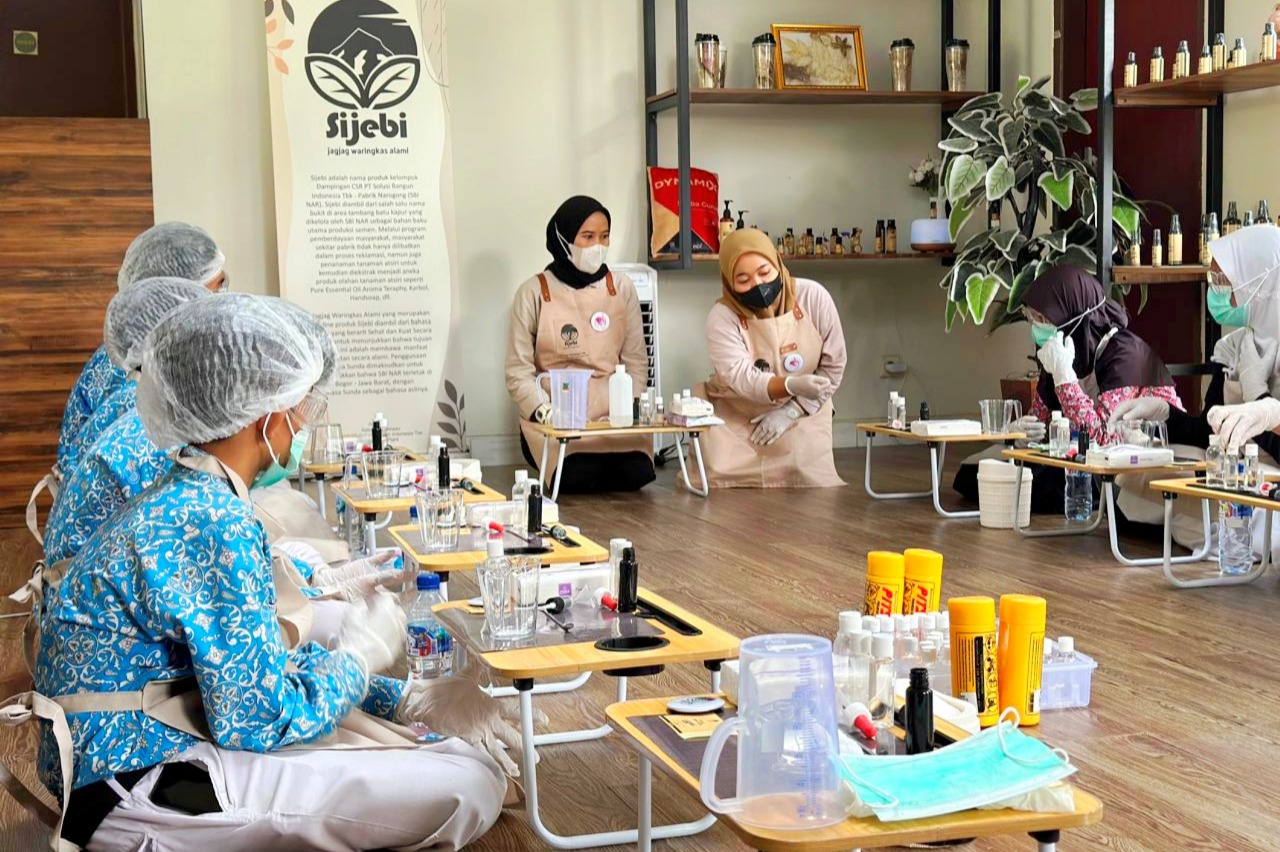 Tidak kalah pentingnya, tanaman serai wangi juga memiliki nilai ekonomis. Di Pabrik Narogong, serai wangi yang dibudidayakan di lahan pascatambang, kemudian dikelola menjadi berbagai produk olahan minyak atsiri oleh kelompok Perempuan Sadar Berkarya (PUSAKA) dengan merk SIJEBI sejak 2021.