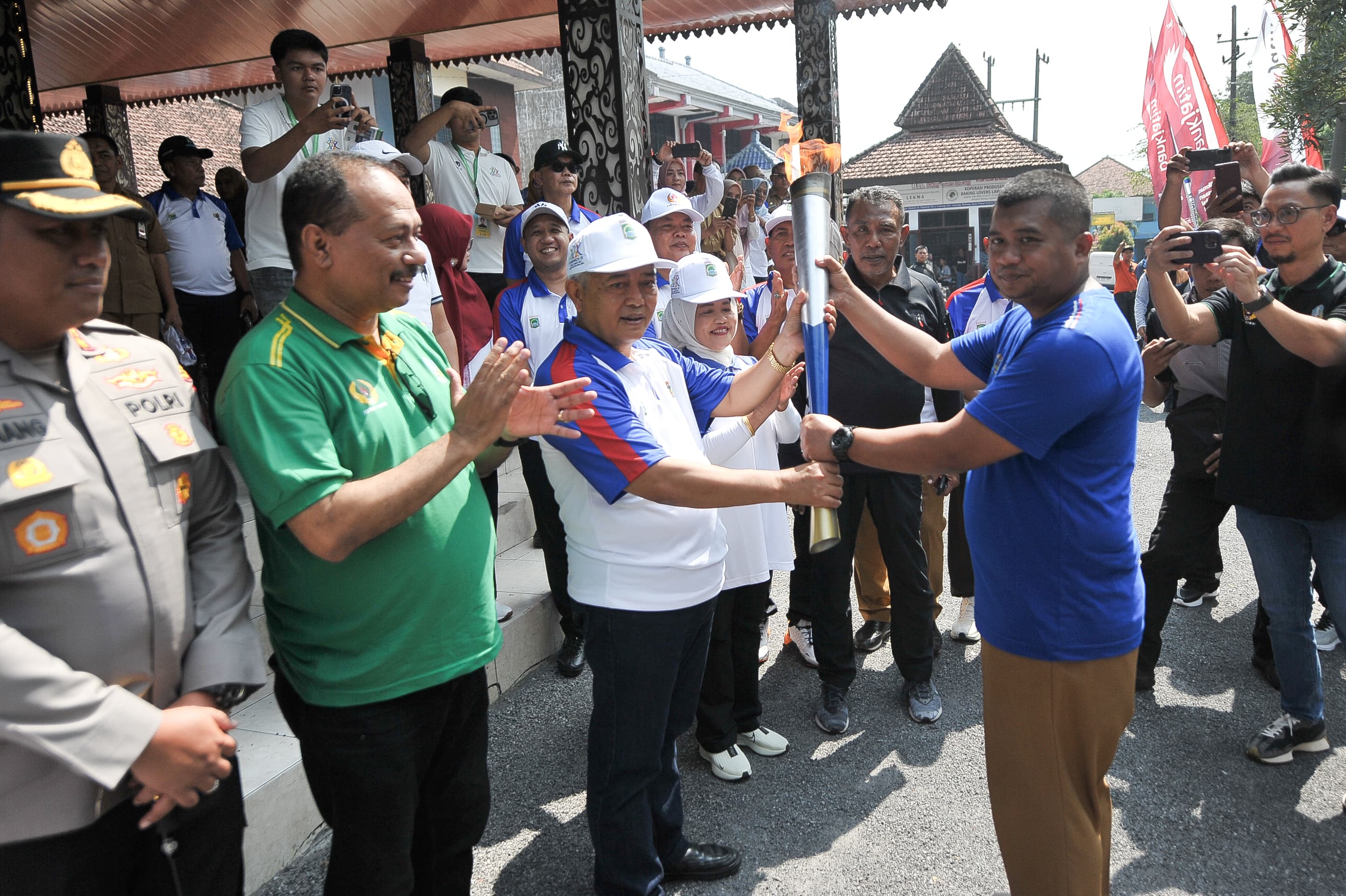 Ketua KONI Jatim Mendampingi Bupati Malang Menyambut Kirab Api Porprov di Lawang