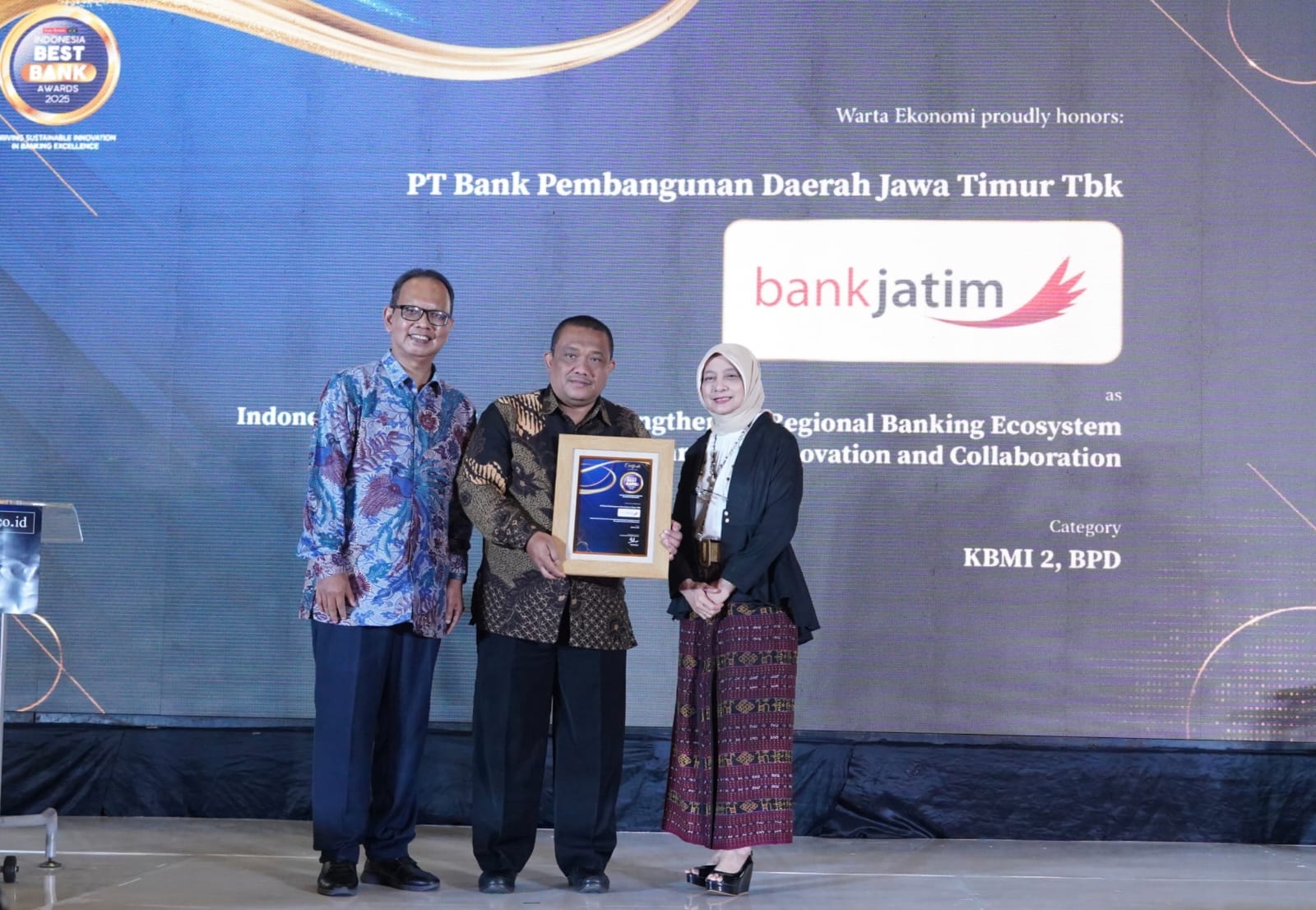 Kemudian satu penghargaan lagi dari Warta Ekonomi sebagai Indonesia Best Bank 2025 for strengthening regional banking ecosystem through innovation and collaboration (kategori KBMI 2, BPD).