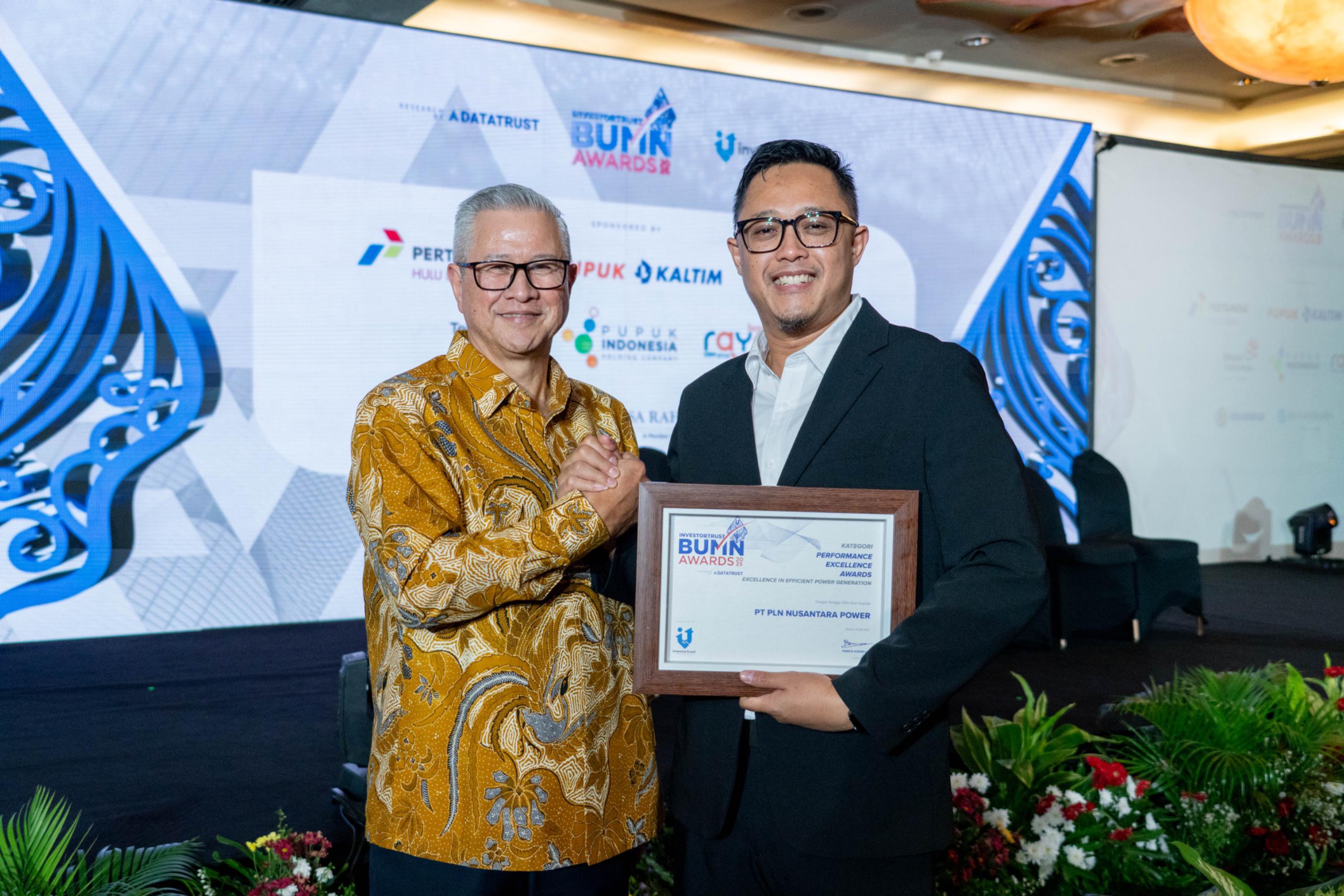 KANALSATU - PT PLN Nusantara Power (PLN NP), subholding pembangkitan listrik terkemuka di Indonesia, kembali menorehkan prestasi gemilang dengan meraih penghargaan “Excellence in Efficient Power Generation” dalam ajang Investortrust BUMN Awards 2025. Prestasi ini menambah daftar kinerja positif PLN Nusantara Power.