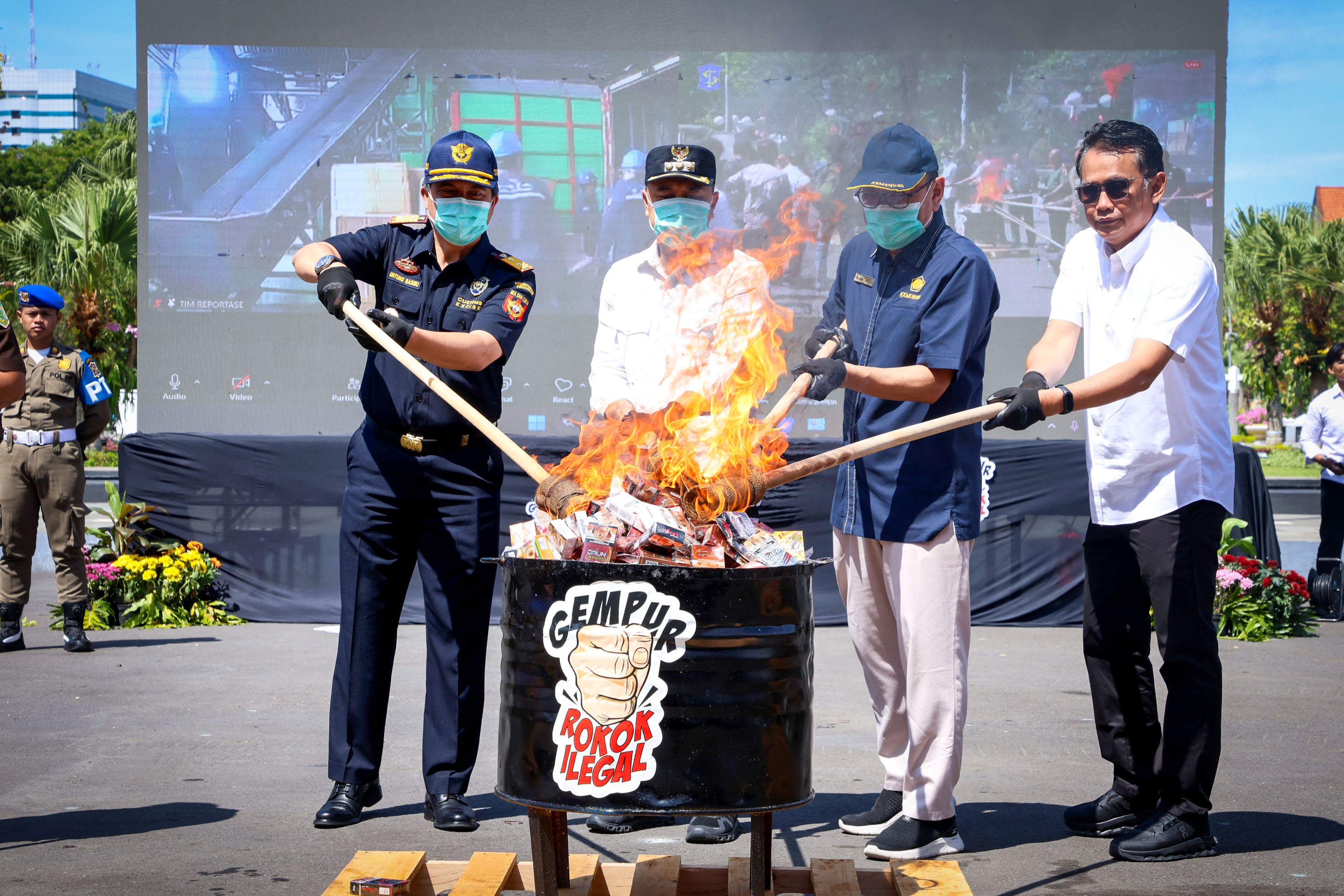 Pemusnahan ini dihadiri Wali Kota Surabaya Eri Cahyadi, Kepala Perwakilan Kementerian Keuangan (Kemenkeu) Jatim Dudung Rufi Hendratna, Kepala Kantor Wilayah DJBC Jatim I Untung Basuki, Kepala KPPBC TMP B Sidoarjo Rudy Hery Kurniawan, serta jajaran Forkopimda Kota Surabaya.