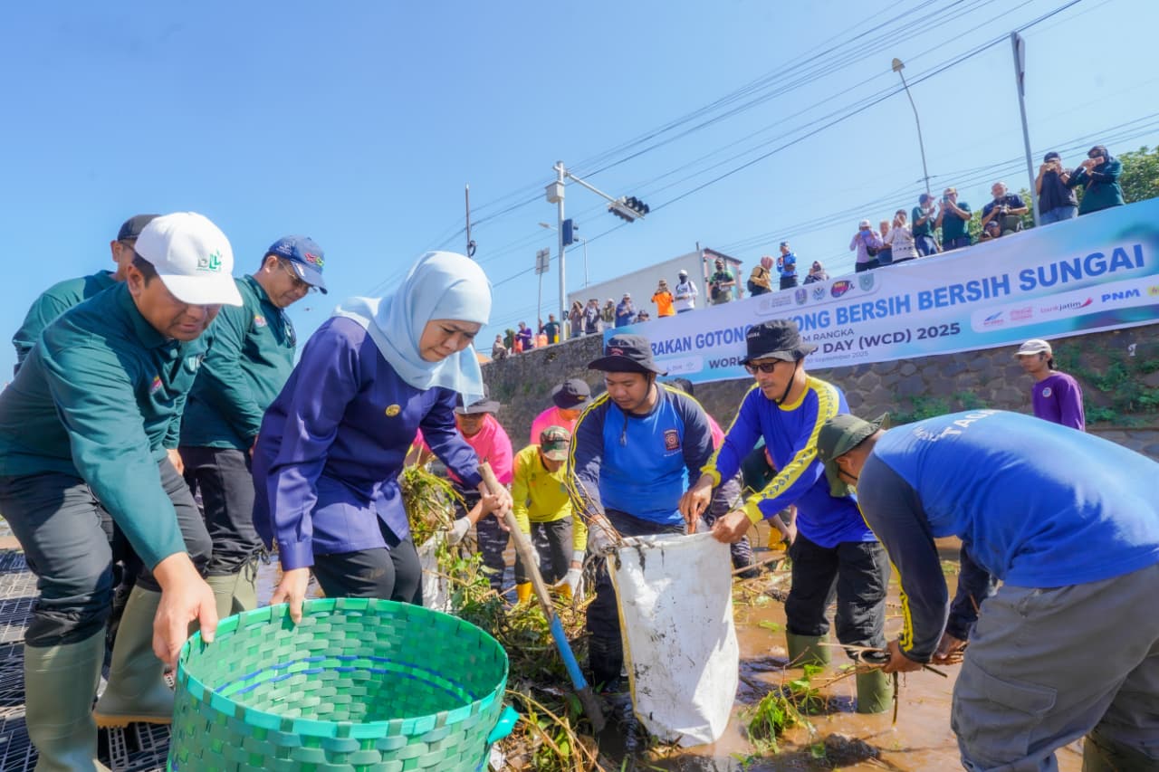 KANALSATU - Gubernur Jawa Timur Khofifah Indar Parawansa memimpin langsung aksi bersih-bersih menyusuri sungai legundi di kawasan RSUD Ar-Rozy, Kota Probolinggo, Sabtu (20/9/2025). Kegiatan ini sebagai bagian dari puncak peringatan World Clean up Day (WCD) 2025.