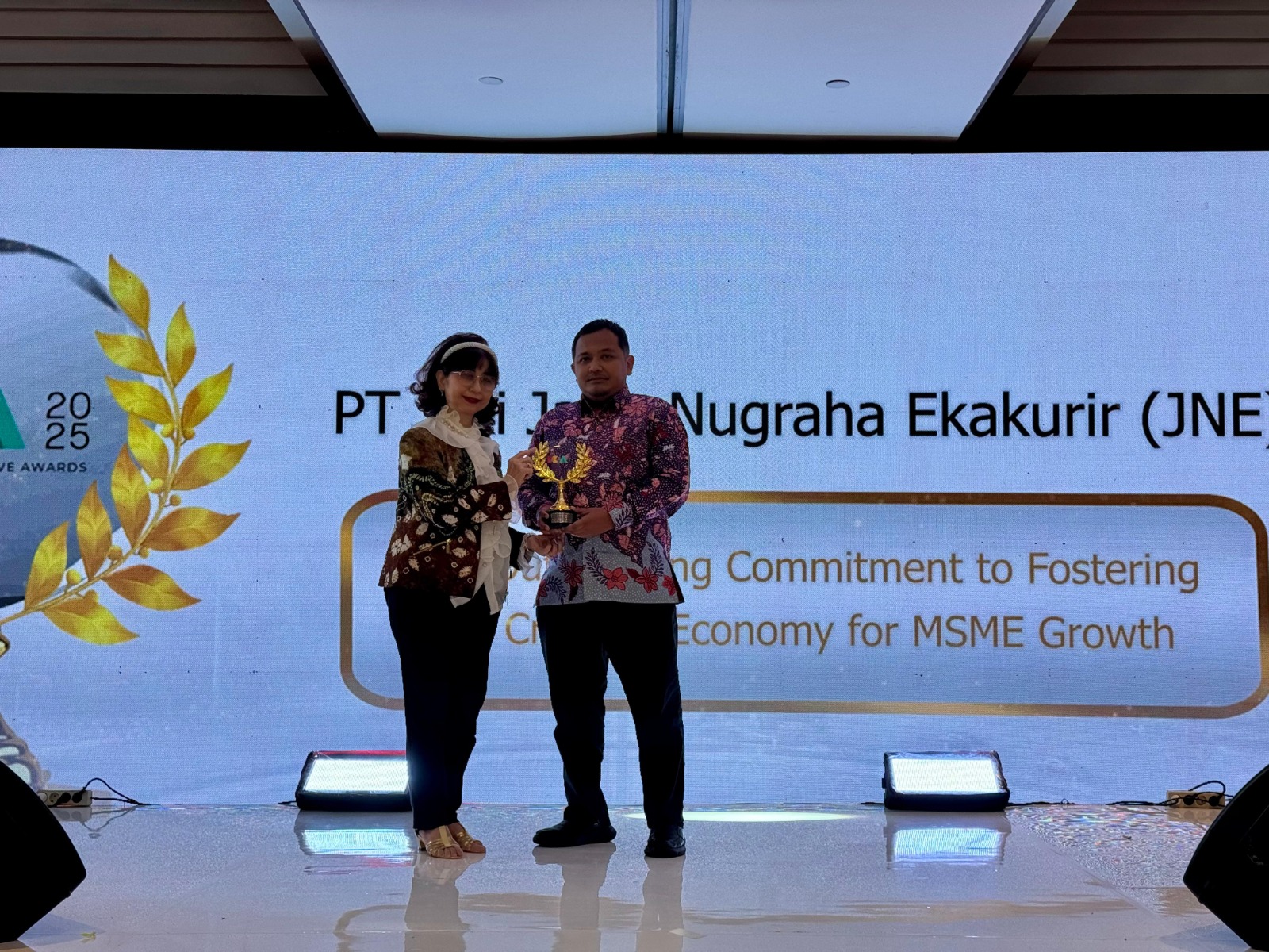 Penghargaan ini diberikan sebagai pengakuan atas komitmen JNE yang luar biasa dalam mendukung dan memajukan sektor ekonomi kreatif yang telah membawa dampak positif bagi generasi muda untuk terus berkreasi, berinovasi, dan memajukan ekonomi kreatif, khususnya bagi para pelaku UMKM.