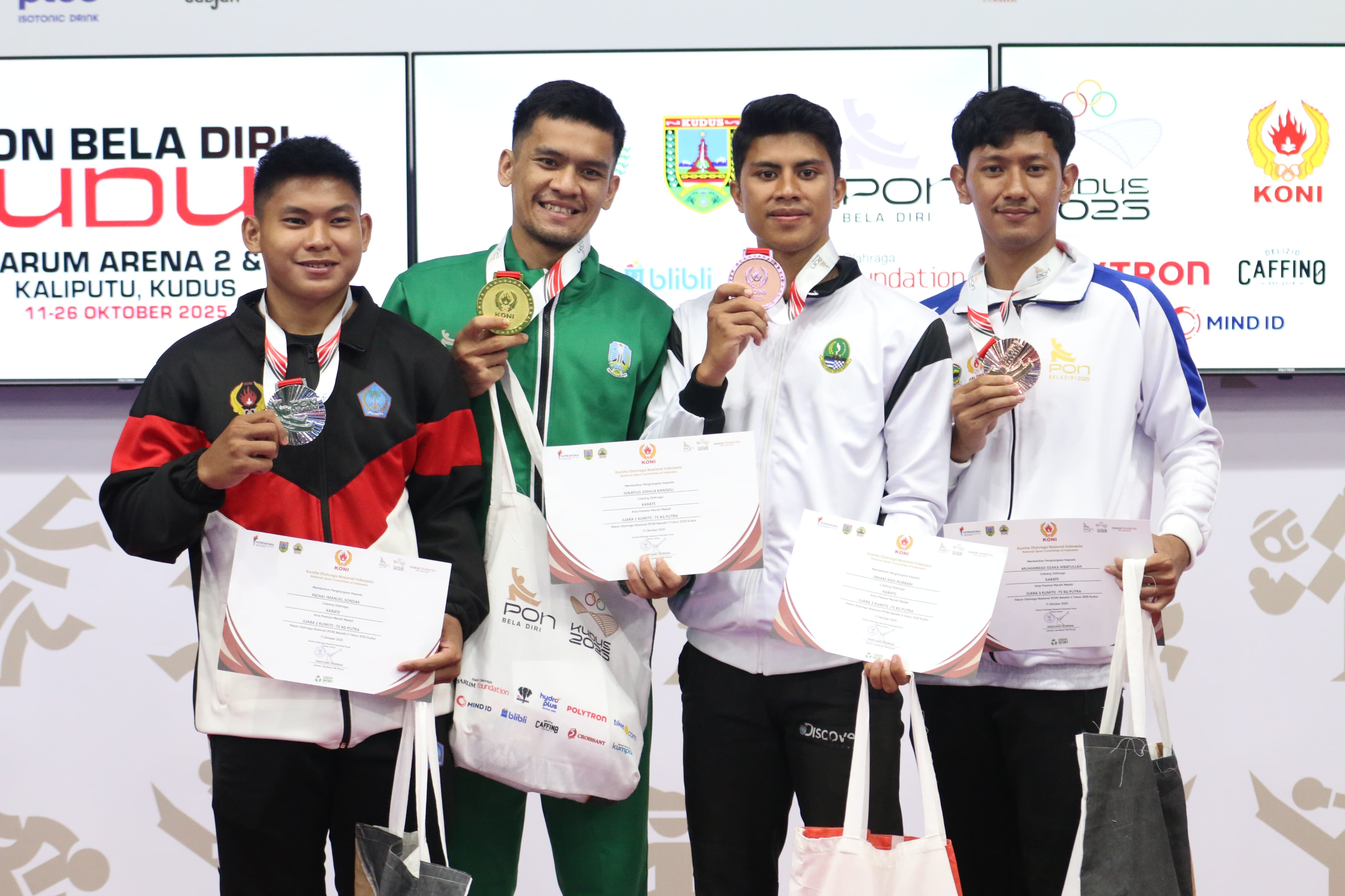Satu emas disumbang oleh Ignatius Joshua Kandaou yang tampil di nomor kumite kelas -75 kg putra dan Moh Risky Romadhoni meraih perak di kelas 60 kg putra.