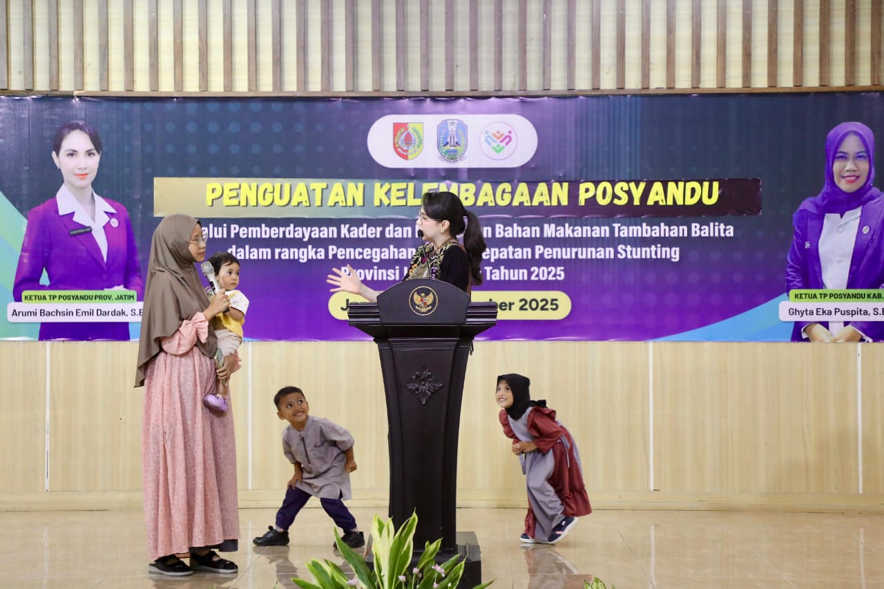 KANALSATU – Ketua Posyandu Jawa Timur, Arumi Bachsin Emil Dardak menegaskan bahwa intervensi gizi yang tepat sasaran serta penguatan kelembagaan Posyandu menjadi dua fokus utama dalam percepatan penurunan stunting di Jawa Timur.