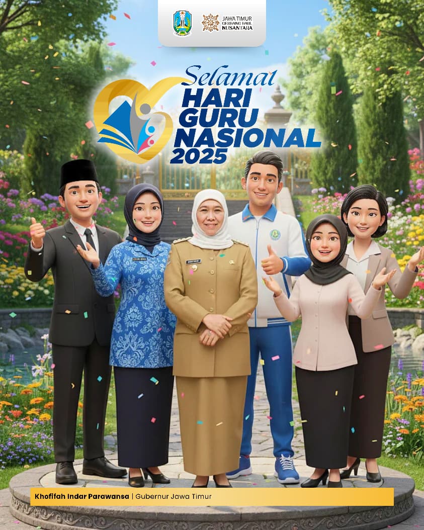 “Selamat Hari Guru Nasional. Terima kasih kepada seluruh guru di Jawa Timur atas dedikasi yang tidak pernah surut. Capaian pendidikan sepanjang tahun ini membuktikan bahwa semangat dan pengabdian para guru adalah energi utama kemajuan Jawa Timur,” pungkas Khofifah.