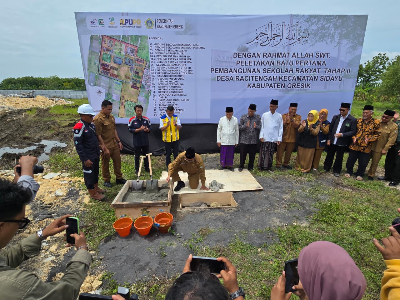 Peletakan batu pertama menandai pembangunan Sekolah Rakyat Tahap II di kawasan Eks. Bumi Perkemahan Sunan Kalijaga, Jl. Raya Cendana, Pekuncen, Sidayu, Gresik, Selasa (9/12/2025). Pembangunan akan berlangsung dari Desember 2025 hingga Juli 2026.