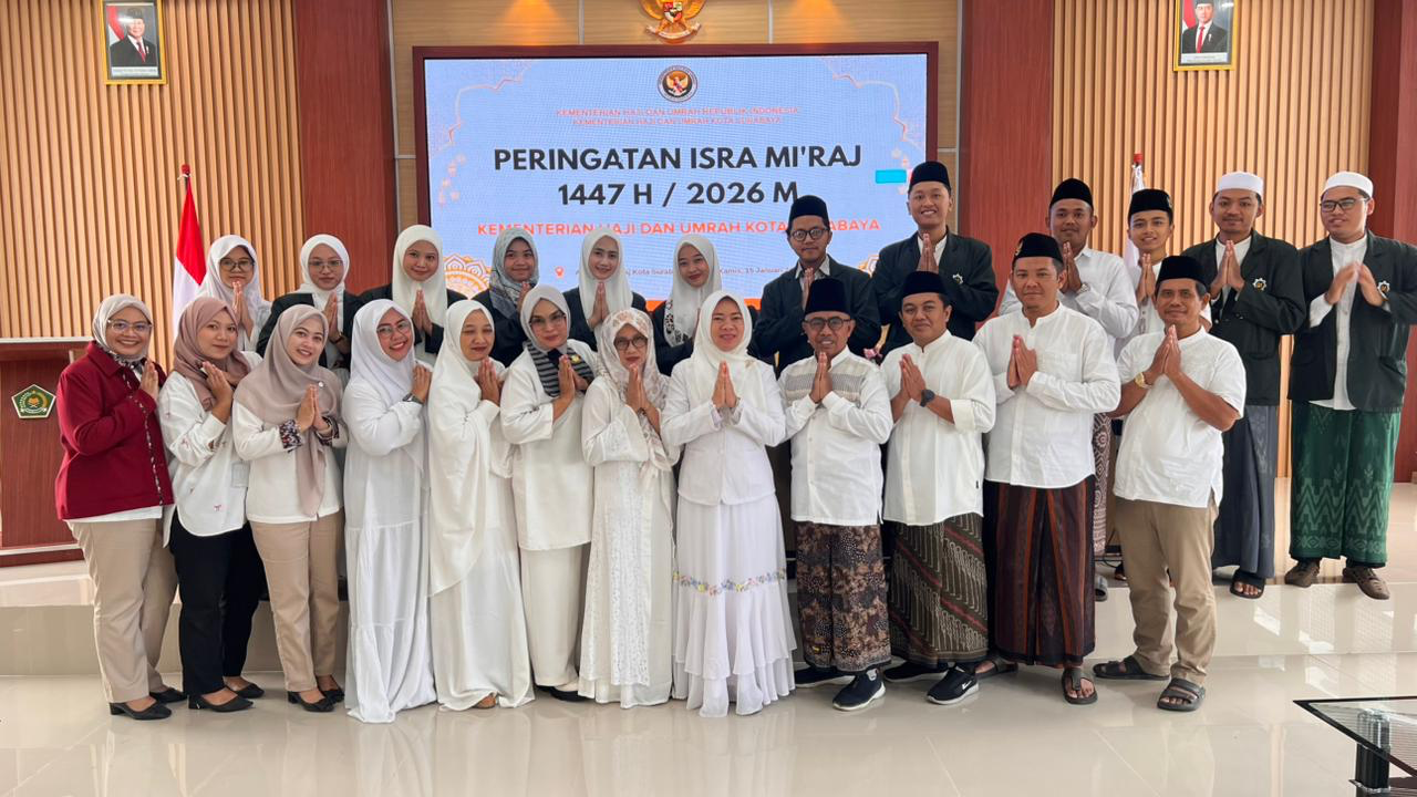 KANALSATU - Peringatan Isra Mi'raj juga digelar Kementerian Haji dan Umrah (Kemenhaj) Kota Surabaya, di Aula Kemenhaj Surabaya, pada Kamis (15/1/2026).
