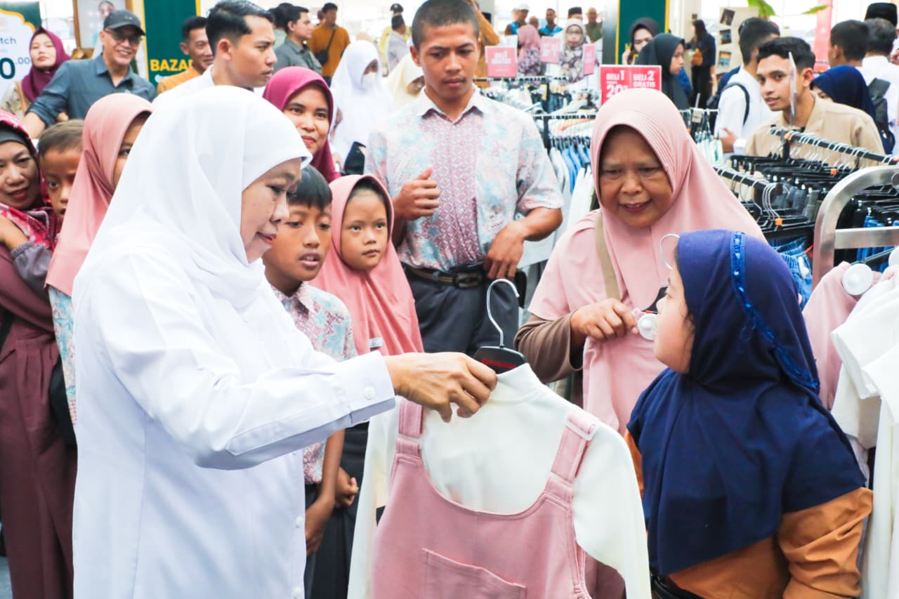 Khofifah bahkan sempat berinteraksi langsung dengan para murid. Ia membantu salah satu siswa memilih pakaian sekaligus mencari ukuran yang sesuai. Ia juga menyaksikan proses pembayaran yang dilakukan para siswa yang tampak gembira bisa memilih sendiri kebutuhan Lebaran mereka.