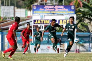 KANALSATU - Tim sepak bola Jawa Timur (Jatim), lolos semifinal juara Grup E, di Pekan…