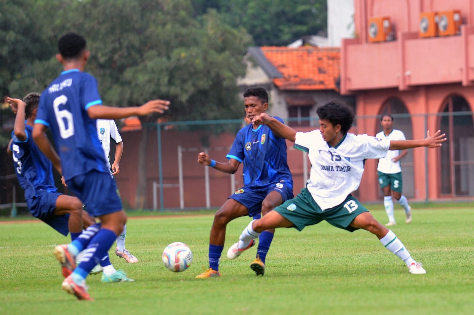 KANALSATU - Tim sepak bola Jawa Timur (Jatim), yang berlaga di Babak Kualifikasi Pekan Olahraga…
