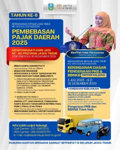 Rabu, 01 Oktober 2025 | 08:27 WIBSambut Hari Jadi ke-80, Pemprov Jatim Kembali Hadirkan Pembebasan Pajak Daerah