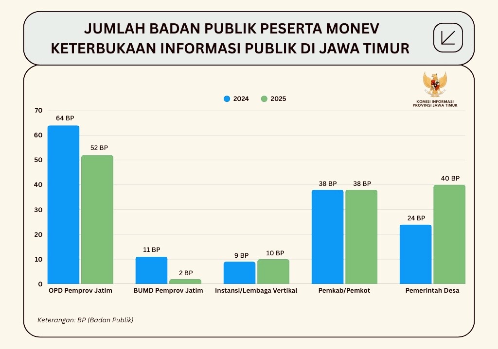 Sabtu, 06 September 2025 | 12:58 WIBTahun 2025 Sedikitnya 70 Badan Publik Jawa Timur Berpeluang Raih Predikat Informatif