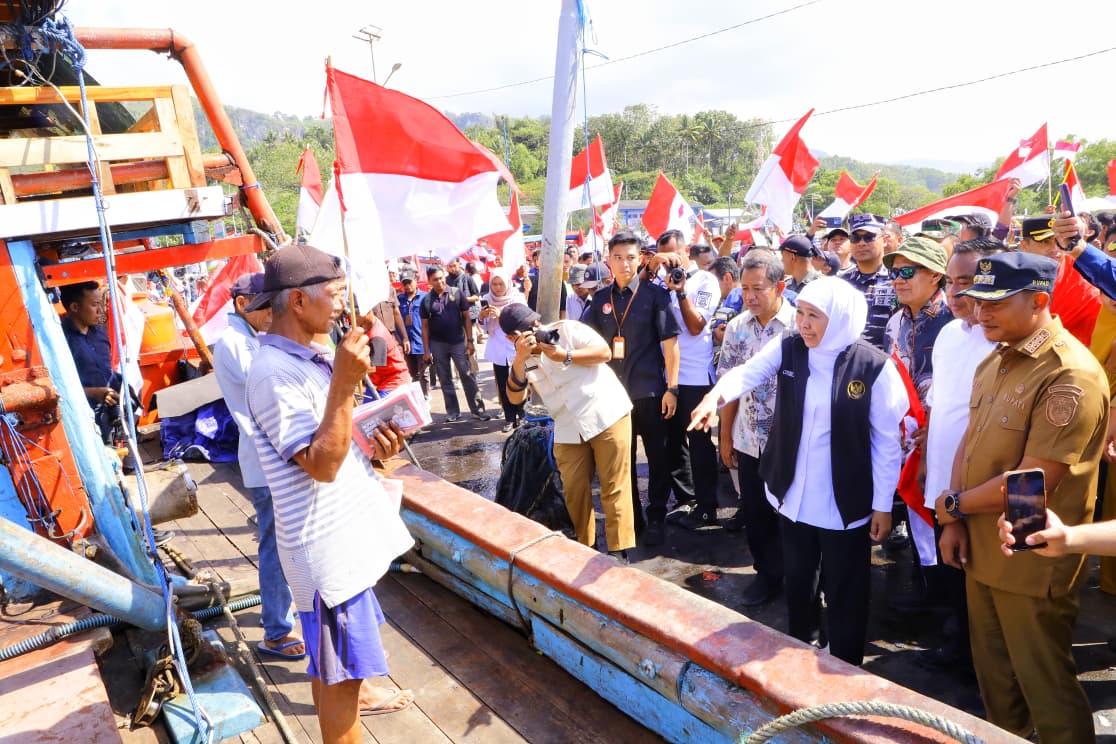 KANALSATU - Gubernur Jawa Timur Khofifah Indar Parawansa menyerahkan berbagai bantuan bagi nelayan Kabupaten Pacitan…