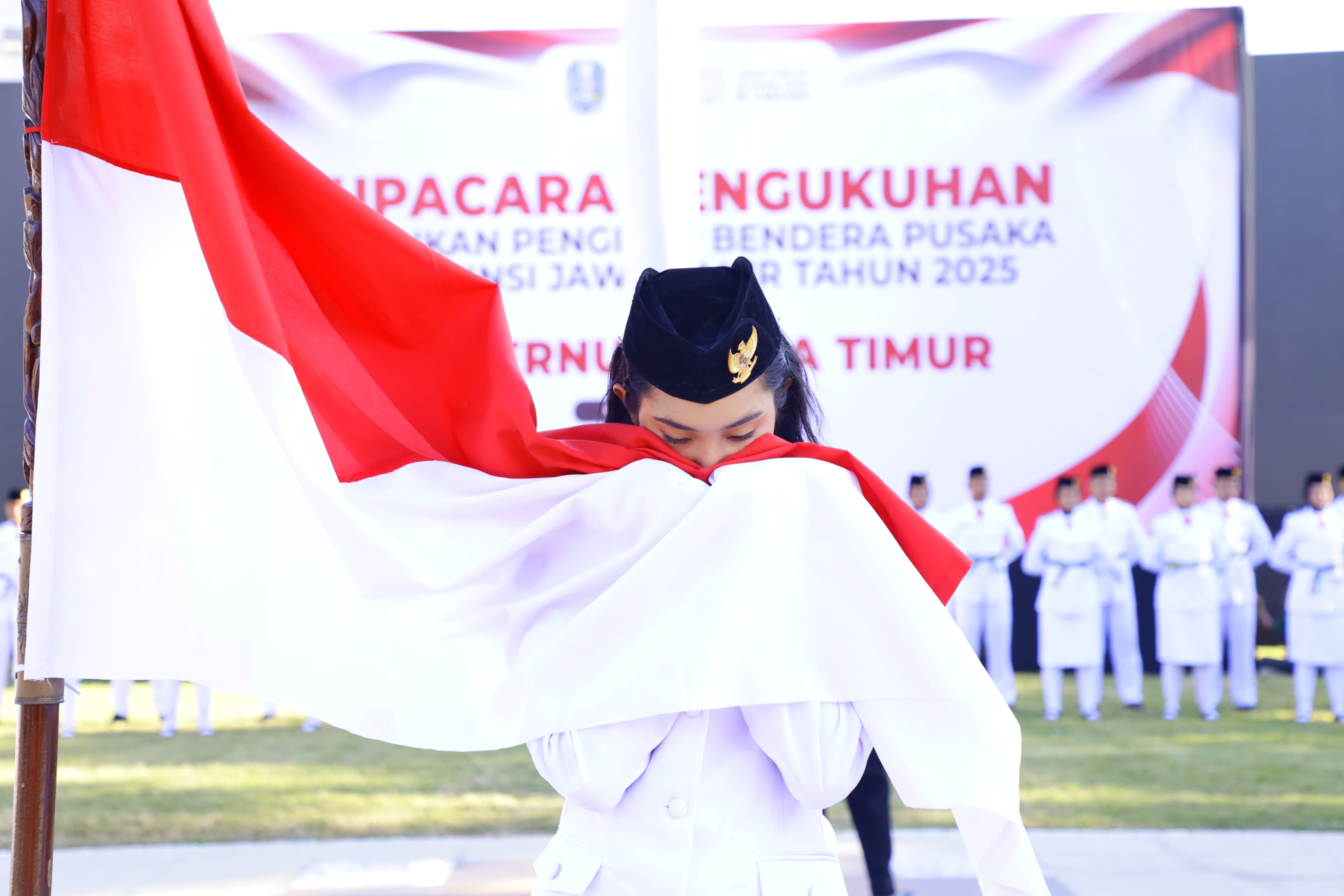 KANALSATU - Gubernur Jawa Timur Khofifah Indar Parawansa mengukuhkan 76 Anggota Pasukan Pengibar Bendera Pusaka…