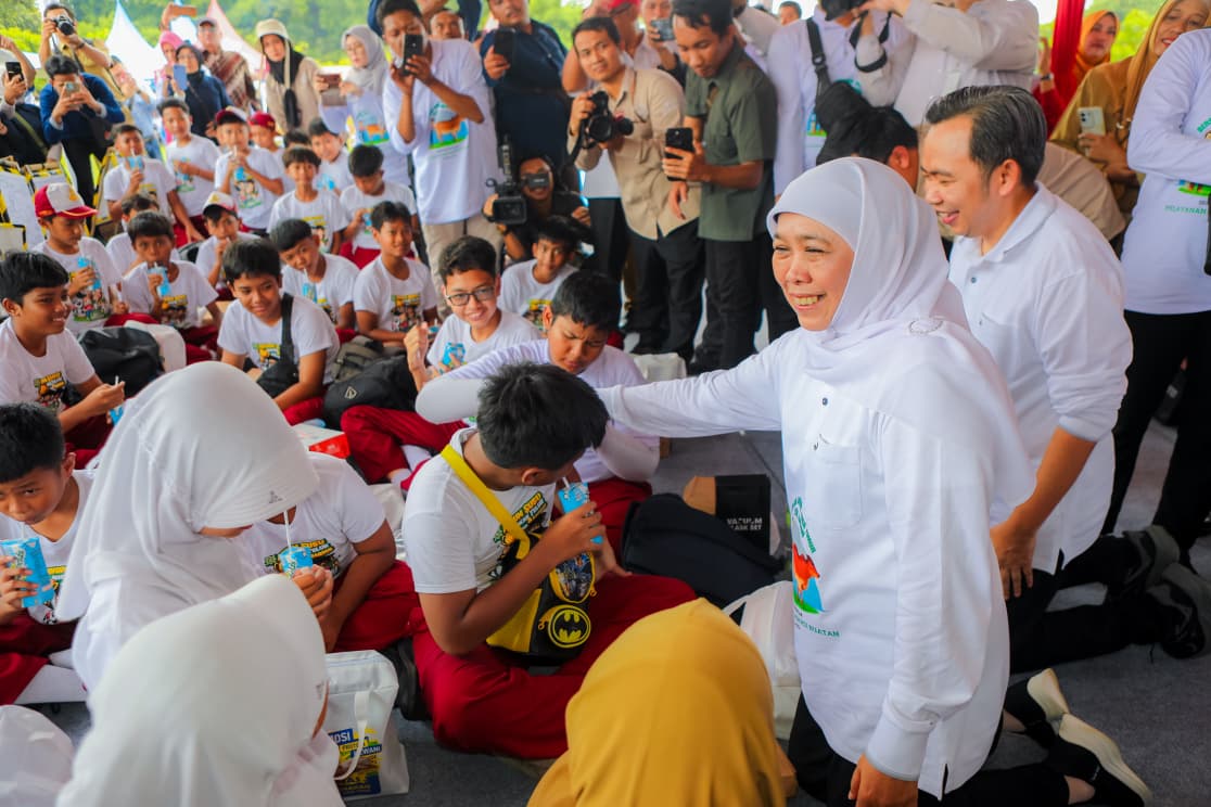 KANALSATU — Gubernur Jawa Timur Khofifah Indar Parawansa menggelar kegiatan minum susu bersama ratusan siswa…