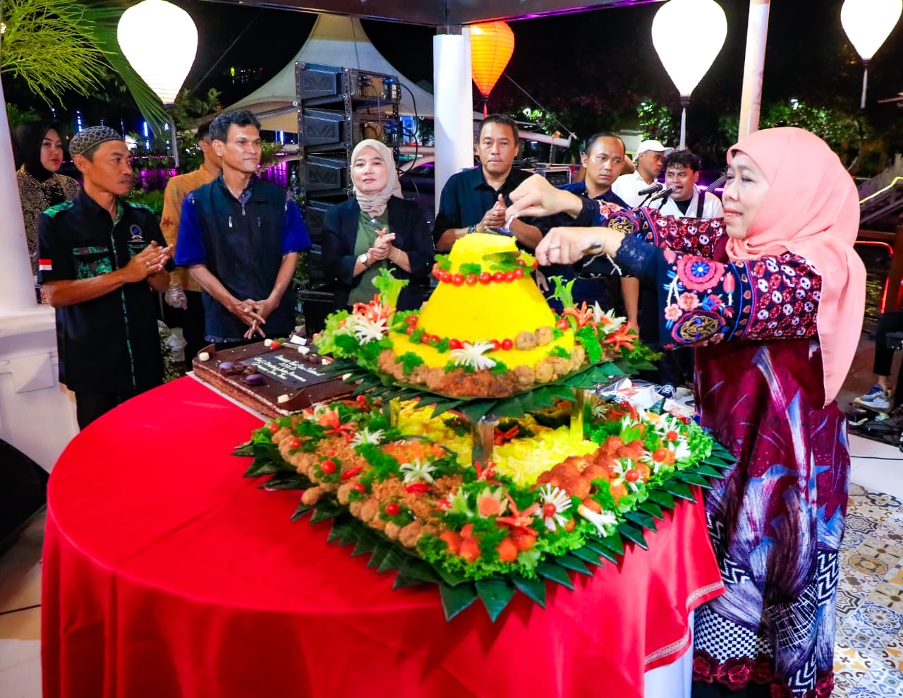 Momentum tasyakuran ditandai dengan potong tumpeng dan makan bersama serta ramah tamah antara Gubernur Khofifah dan para jurnalis yang selama ini menjadi mitra strategis pemerintah dalam menyampaikan informasi publik kepada masyarakat.